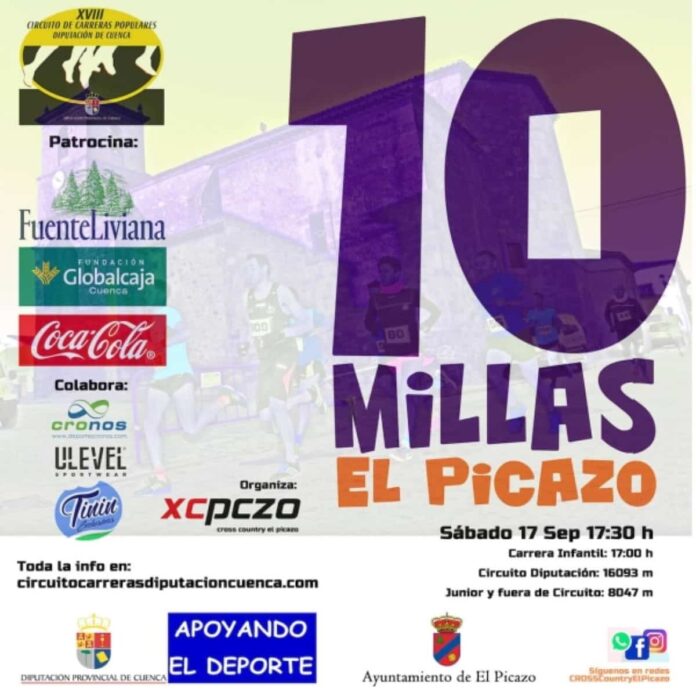 El próximo sábado 17 de septiembre, se celebrará las 10 millas El Picazo, la cita es a las 17:30 horas. Este evento deportivo que forma parte del Circuito de Carreras Populares de la Diputación de Cuenca, es organizado por XCPCZO. Y con la colaboración del ayuntamiento de la localidad.