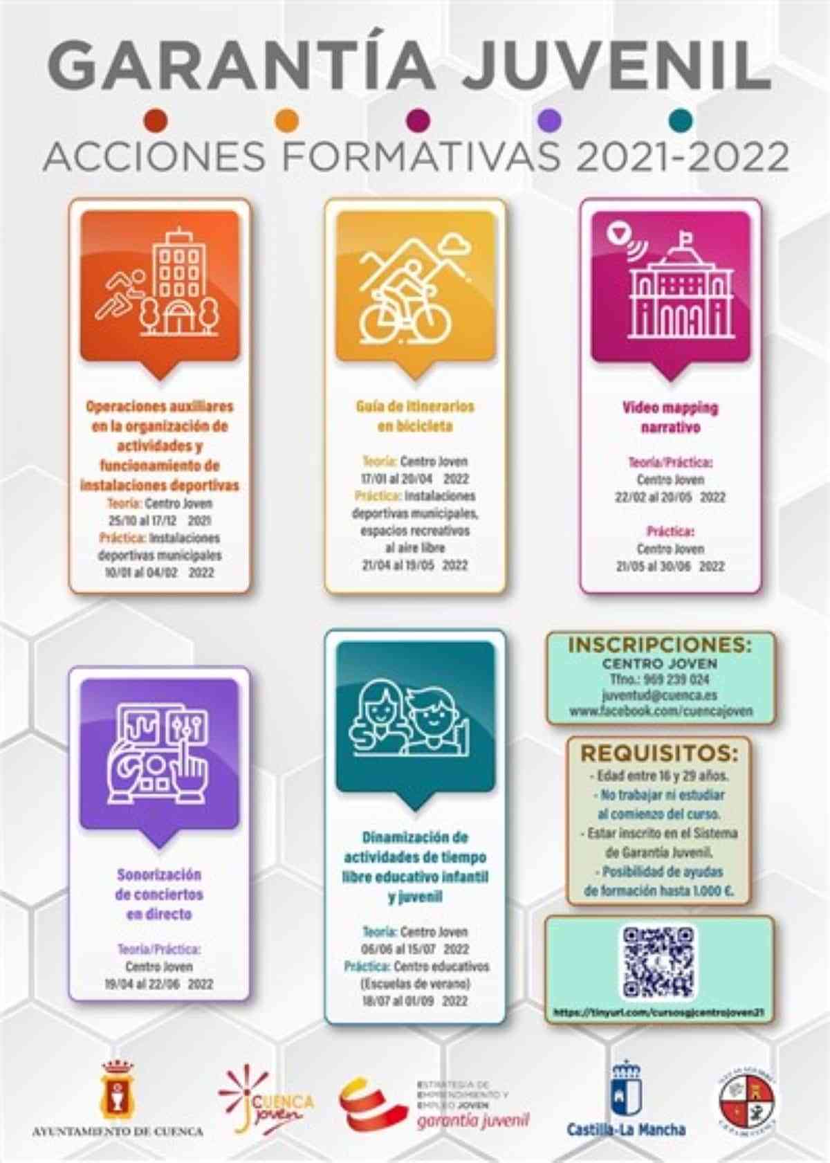 Las inscripciones para la oferta de cursos de Garantía Juvenil ha abierto desde hoy el Centro Joven de Cuenca. Estos cursos son organizados con la colaboración de la Delegación Provincial de Educación, Cultura y Deportes, y el CEPA Lucas Aguirre.