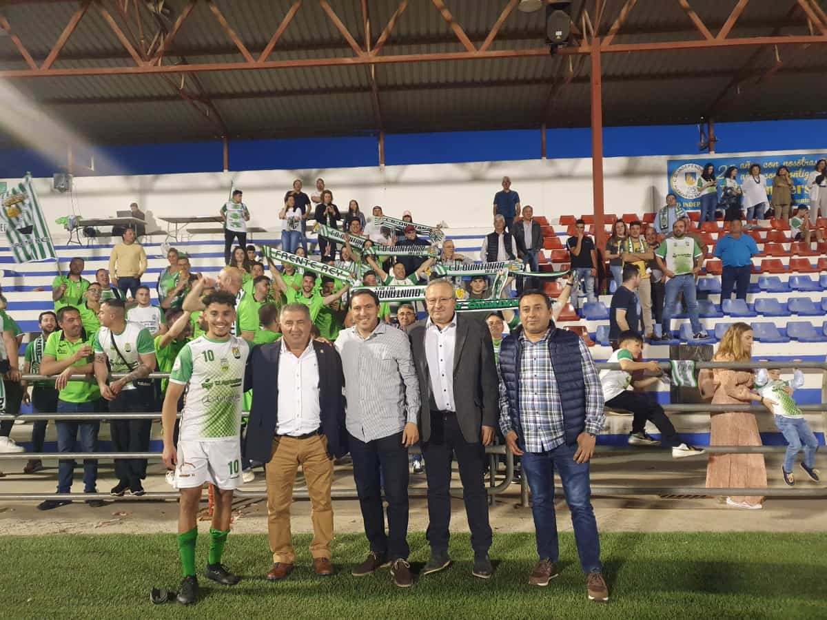El CD Quintanar del Rey es uno de los clubes deportivos, que está jugando play-off de ascenso de esta Tercera RFEF y que empató en su partido este pasado sábado frente al CD Torrijos, pero consiguió el pase a la final después de 120 minutos, gracias a la clasificación en la fase regular. En este encuentro estuvo el presidente, Álvaro Martínez Chana, junto al alcalde, Martín Cebrián, el presidente del club, Evelio Cebrián, y el resto de miembros de la Junta Directiva y la afición.
