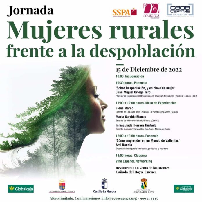 La Asociación de Mujeres Empresarias de la provincia de Cuenca, junto con CEOE Cepyme Cuenca y la Red SSPA celebrarán el próximo jueves, 15 de diciembre, una jornada bajo el título ‘Mujeres rurales frente a la despoblación’.