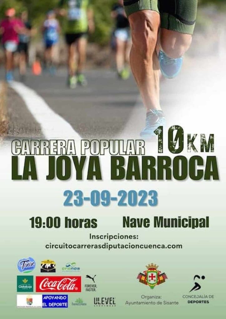 Llega la edición 2023 de la Carrera Popular 10 Km La Joya Barroca el 23 de septiembre en Sisante (Cuenca) dentro del Circuito Provincial de Carreras Populares de la Diputación de Cuenca. Evento organizado por el Excmo. Ayuntamiento de Sisante en colaboración con la Excma. Diputación Provincial de Cuenca.