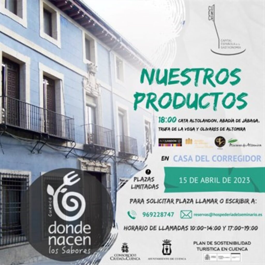 Una cata de diferentes productos conquenses se realizará este sábado 15 de abril a las 18 horas para celebrar la Capital Española de la Gastronomía. Será en la Casa del Corregidor y de la mano de ‘Donde nacen los sabores’. La cata es organizada por el Ayuntamiento de Cuenca bajo el paraguas del Plan de Sostenibilidad Turística.