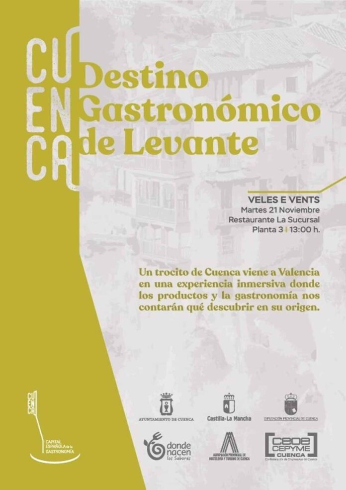 Valencia será la ciudad anfitriona de un evento que promete ser un escaparate de los sabores y tradiciones que han convertido a Cuenca en la Capital Española de la Gastronomía 2023. El martes 21 de noviembre, la ciudad levantina acogerá la presentación «Cuenca, destino gastronómico de Levante», una oportunidad para descubrir los productos y creaciones culinarias que han elevado la reputación gastronómica de la ciudad manchega.