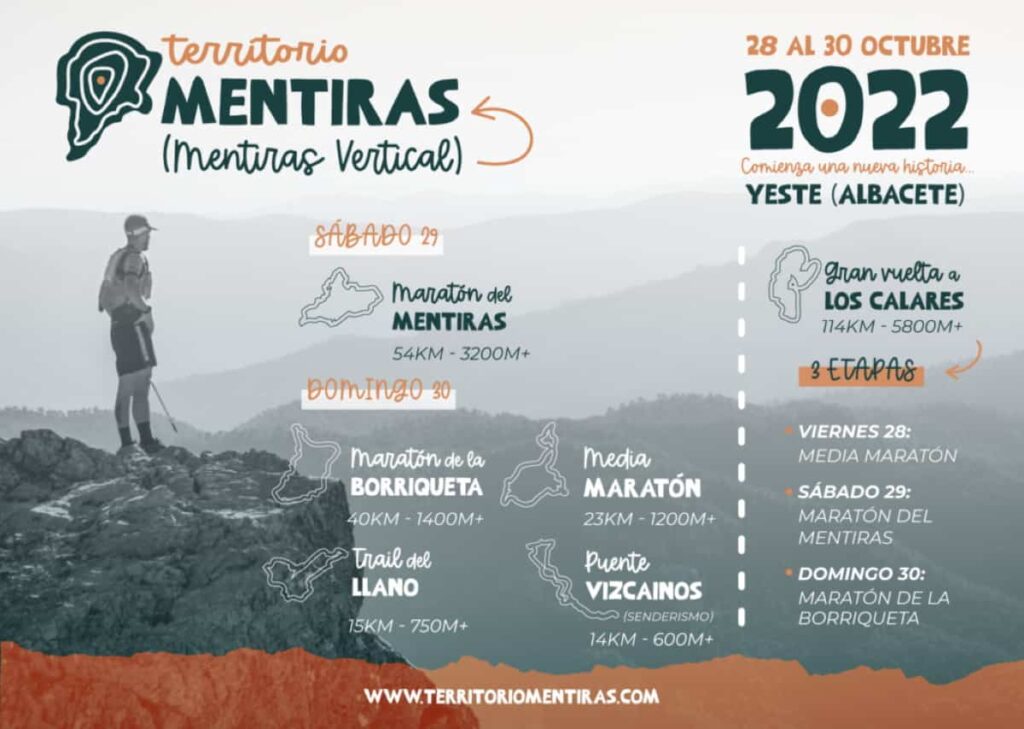 Además, han detallado que la propuesta que llegará a Yeste del 28 al 30 de octubre aglutina diferentes carreras y comenzará el viernes 28 con la primera etapa de la Gran Vuelta a Los Calares, para celebrar el sábado su prueba reina: Maratón del Mentiras, y culminar el domingo con diferentes carreras entre las que incluye: una maratón, una media maratón, un trail y una prueba de senderismo. “Cada prueba alude a algo representativo de la zona”, ha señalado Raúl Martos valorando la trayectoria que esta iniciativa deportiva ha experimentado durante años y explicando que el objetivo de este Territorio Mentiras es el de consolidarse a nivel nacional para poder dar el salto internacional de cara a la edición del próximo año.