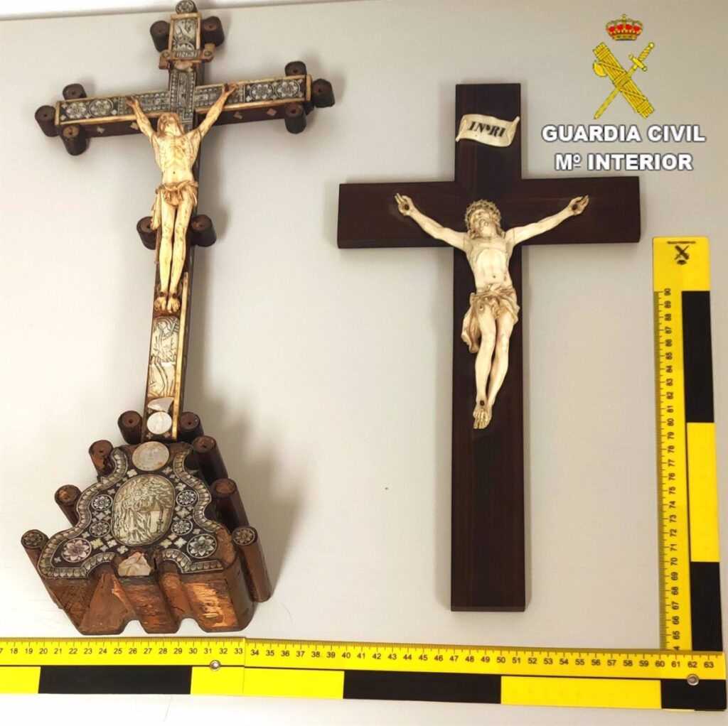 El Equipo del SEPRONA de la Guardia Civil de Cuenca ha llevado a cabo una investigación en línea que descubrió dos publicaciones que ofrecían a la venta dos estatuas religiosas de marfil del siglo XIX. Después de analizar los mensajes y examinar las características de las figuras mostradas en las fotografías, se sospechaba que las piezas ofrecidas eran de marfil de elefante, lo que podría indicar un posible tráfico ilegal de especies protegidas de flora y fauna.