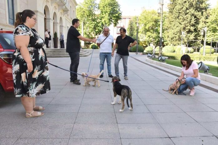 La vicepresidenta de la Diputación, Nuria Illana, ha ofrecido una rueda de prensa en los jardines provinciales donde han estado presentes tres responsables de la empresa pública Geacam, que es quien gestiona este servicio, junto con tres perros: Caramelo, Rocky y Leo que se encuentran actualmente en el Albergue Provincial.