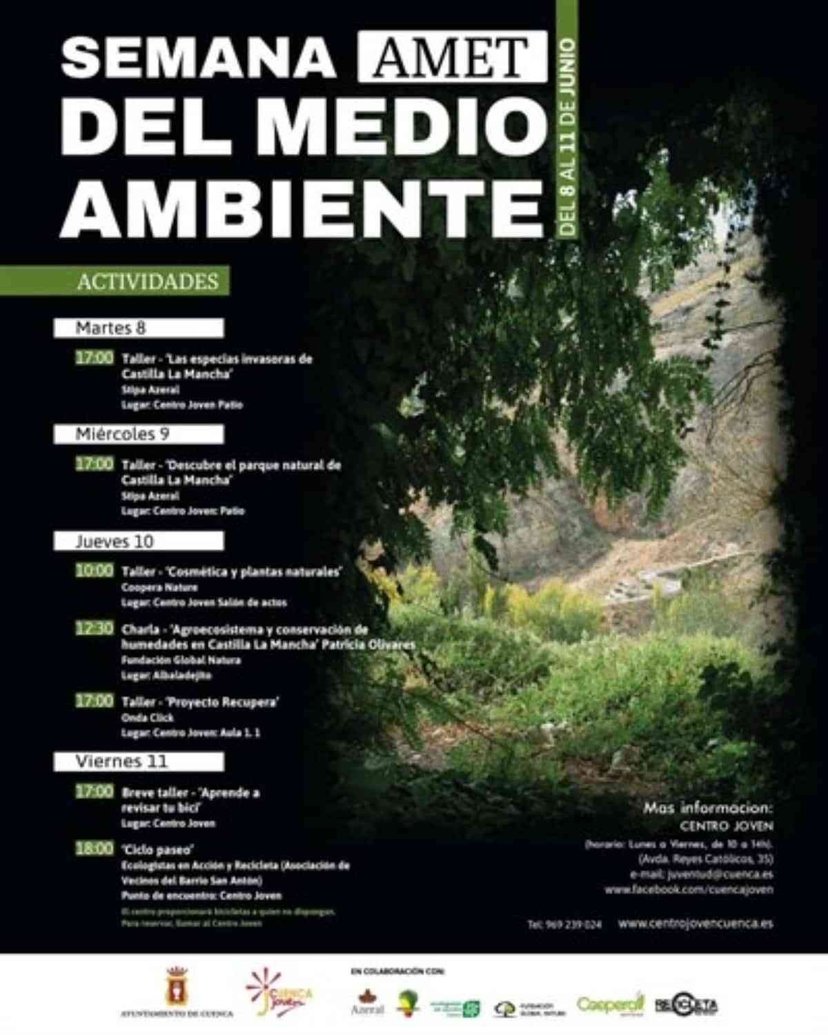 El proyecto ‘AMET Semana del Medio Ambiente’ de la Concejalía de Juventud del Ayuntamiento de Cuenca, busca mejorar los hábitos de los adolescentes y jóvenes en relación con el medio ambiente. Y por ello, pone en marcha la semana que viene con los estudiantes de prácticas del Ciclo de Grado Superior de Animación Sociocultural y Turística del IES ‘Santiago Grisolía’.