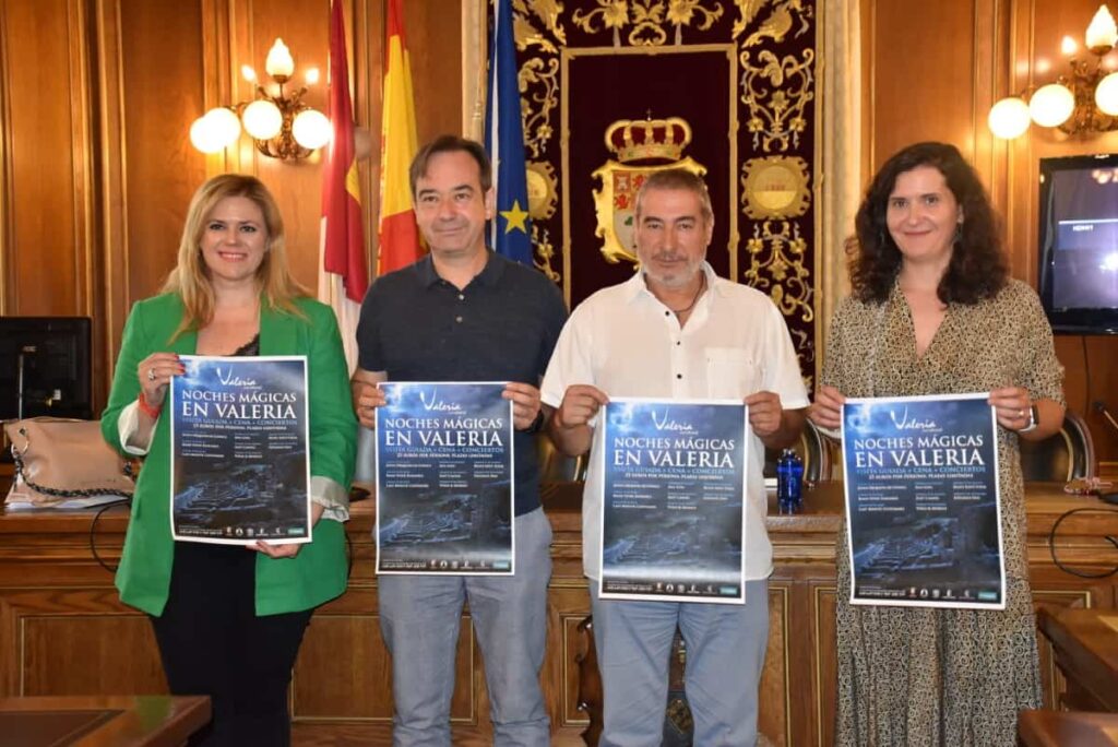 Los encargados de presentar a los medios de comunicación ‘Noches Mágicas en Valeria’ han sido el diputado de Patrimonio, Miguel Ángel Valero; la delegada de la Junta en Cuenca, María Ángeles Martínez; el alcalde de Valeria, Juan Pedro Martínez; y la directora de la Fundación Globalcaja, Henar de la Sierra.