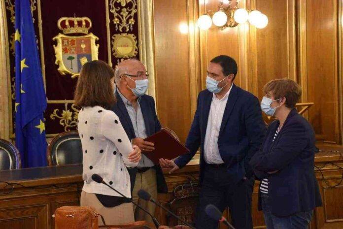 El presidente, Álvaro Martínez Chana, y el director de Cáritas Diocesana Cuenca, Pedro Bordallo, han sido los encargados de firmar este documento de renovación del convenio anual, en el Salón de Plenos donde han estado acompañados por la diputada de Servicios Sociales, Lorena Cantarero, y la responsable de Comunicación de Cáritas, Mari Paz Ramírez.