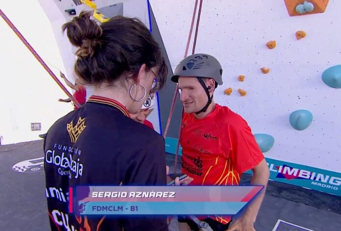 La prueba solo está adaptada a personas con discapacidad física, por eso Sergio ha competido en categoría B1, ciego total, es decir, que esta Federación no tiene en cuenta en el caso que tenga TEA. Tras competir a primera hora de esta jornada, Sergio se ha clasificado para la final, en la que ha sido el único de su categoría. En estas primeras subidas, según explica su entrenadora Paloma Picher, “ha escalado lo que se esperaba: en la primera vía 20 presas y en la segunda vía 14 presas. En cuanto a altura han sido unos 7 metros”.