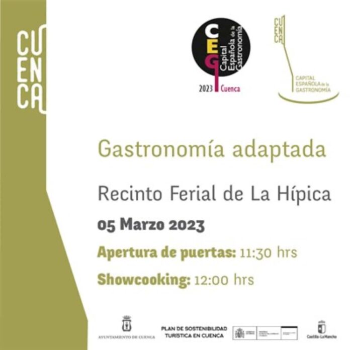 Todos podrán disfrutar del evento “Gastronomía adaptada” que organiza el ayuntamiento de Cuenca este fin de semana, el domingo 5 de marzo, como Capital Española de la Gastronomía. El mismo será en el recinto ferial de La Hípica y la entrada es libre hasta completar aforo. La apertura de puertas será a las 11,30 horas y el inicio del showcooking a las 12,00 horas.