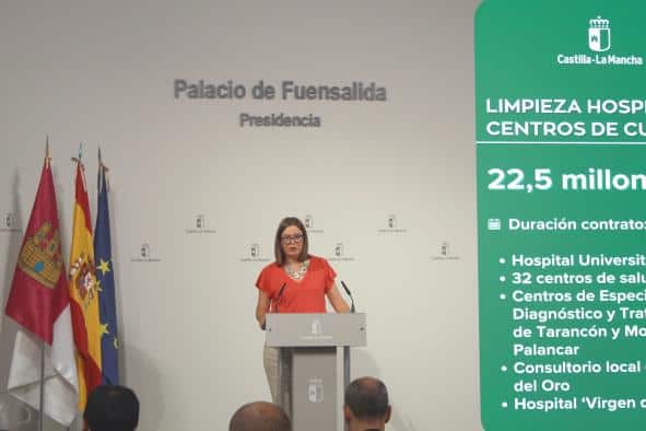 Toledo, 25 de junio de 2025.- Esta semana, el Consejo de Gobierno ha autorizado la contratación y el gasto del servicio de limpieza del nuevo Hospital Universitario de Cuenca y del conjunto de centros adscritos a la Gerencia del Área Integrada de Cuenca. Así lo ha anunciado la consejera Portavoz, Esther Padilla, quien ha incidido en que el Gobierno de Castilla-La Mancha continúa dando pasos firmes para asegurar una atención sanitaria moderna y de calidad.