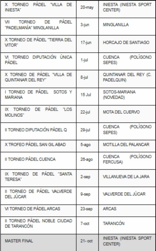 Otra de las novedades del Circuito de Pádel, es el aumento de la cuantía de inscripción a cada prueba en 2 euros por persona, tal y como han solicitado los organizadores. También se han incrementado las cuantías de los premios, pasando de 1.300 euros a 1.600 euros.