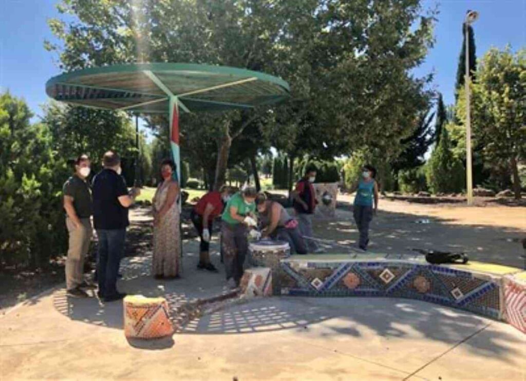 Allí, las trabajadoras del programa RECUAL (antiguos talleres de empleos) culminaban los trabajos de pintura de una buena parte del mobiliario urbano y el saneamiento de los bancos para que, posteriormente, se lleven a cabo los trabajos de albañilería a través del Plan de Empleo.