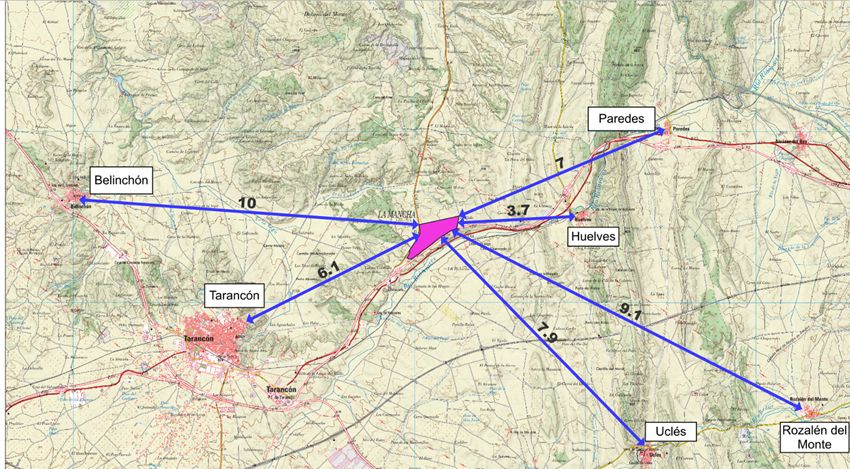 Además, el paraje de la Ermita de la Virgen de Riánsares en Tarancón (a 1,8 km) y el Castillo de Acuña en Huelves (a 3,8 km) son lugares de especial interés turístico y vecinal que quedan muy cerca de la ubicación de la instalación. La parcela se encuentra dentro de zona de dispersión del Águila perdicera, así como en una región de densidad de aves esteparias, tal y como se indica en el proyecto.