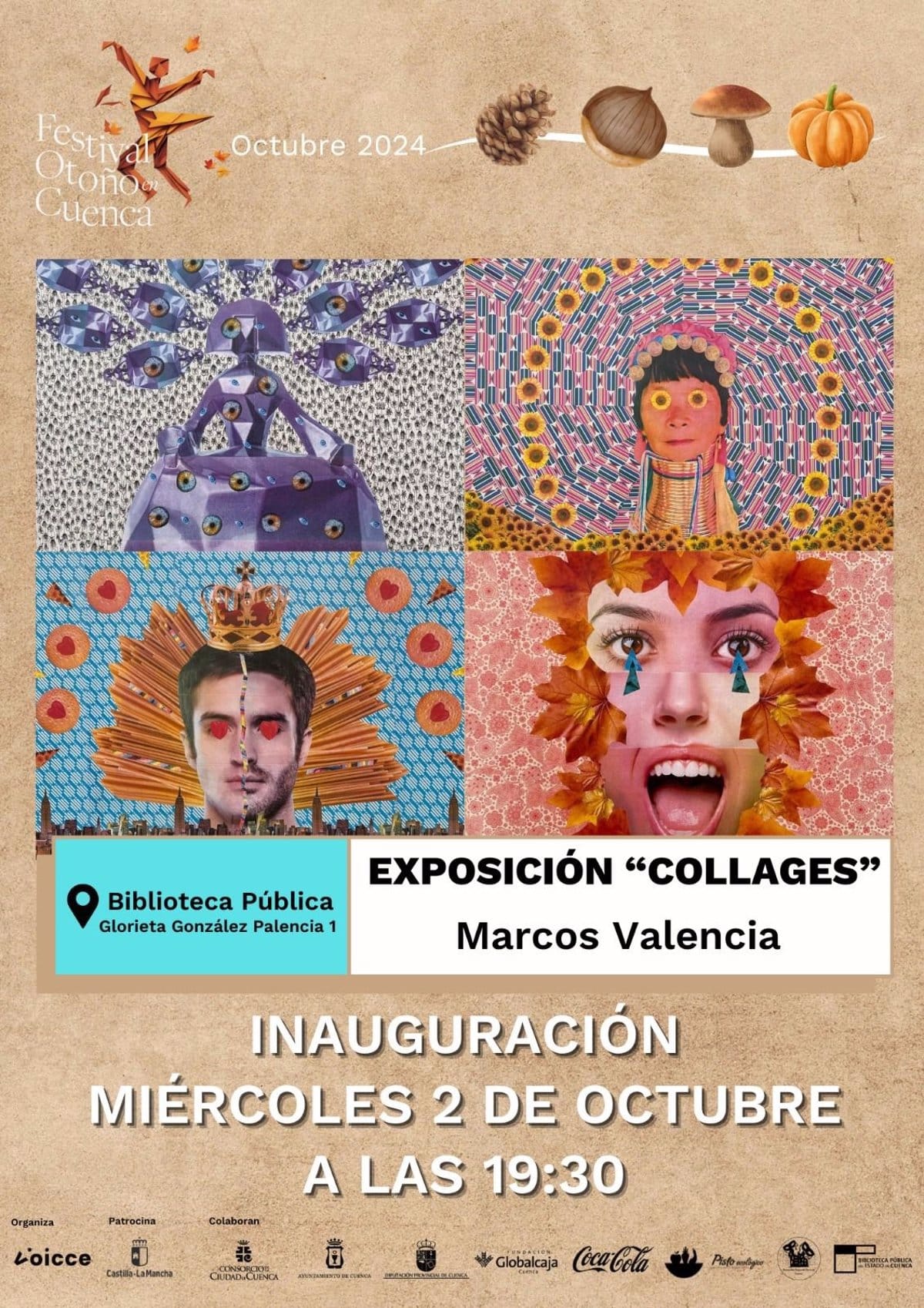 El artista conquense Marcos Valencia inaugurará este jueves, 3 de octubre, la exposición ‘Collages’ en la Biblioteca Pública del Estado en Cuenca, ubicada en Glorieta González Palencia, 1. La muestra estará abierta al público hasta el 11 de octubre, de lunes a viernes, en horario de 8.30 a 21.00 horas.