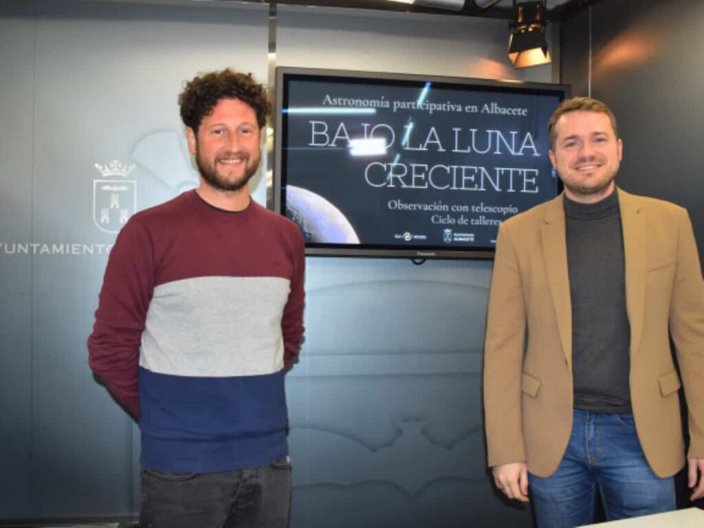 El concejal de Participación Ciudadana, Manu Martínez, y el impulsor del proyecto, Juan Fernando Sáez, han presentado la iniciativa, que con el nombre de Bajo la Luna Creciente propicia un acercamiento a la astronomía.