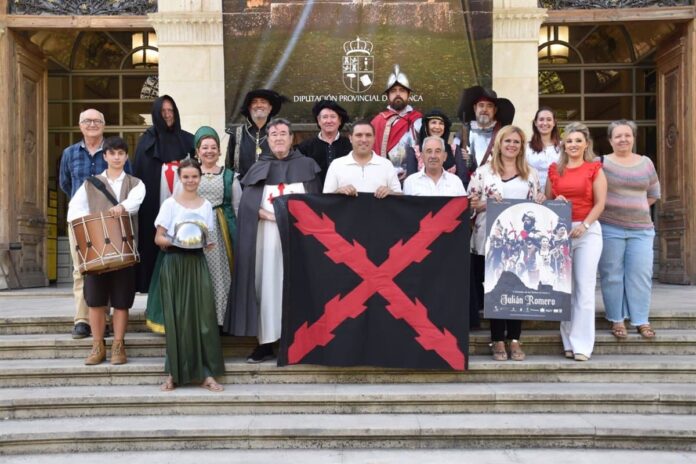 La presentación del programa tuvo lugar en el Salón de Plenos de la Institución provincial este martes, contando con la participación del presidente de la Diputación, Álvaro Martínez Chana; la diputada de Cultura, María Ángeles Martínez; la delegada provincial de Economía, Empresas y Empleo, Arancha Poveda; el presidente de la Asociación Cultural Julián Romero, Antonio Vicente Mora; el coordinador de las Jornadas, Miguel Romero; y el alcalde de Huélamo, Leopoldo Martínez. Además, un grupo de 20 personas que forman parte de la recreación histórica asistió al evento vestidos con trajes de la época.