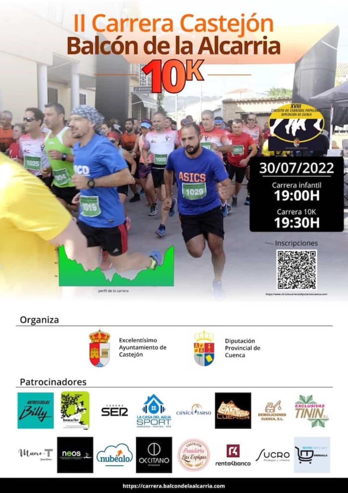 Este sábado 30 de julio se celebra la II Carrera Castejón Balcón de la Alcarria 10K del Circuito de Carreras de la Diputación de Cuenca. La carrera infantil a las 19 horas. Y la carrera 10K a las 19:30 horas. Organizada por el ayuntamiento de la localidad y la Diputación de Cuenca.
