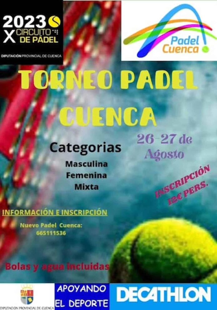 El torneo es organizado por Nuevo Pádel Cuenca, en categorías masculina, femenina y mixta. Inscripción 12 euros por persona. Más información en https://www.cpadeldipucuenca.com/