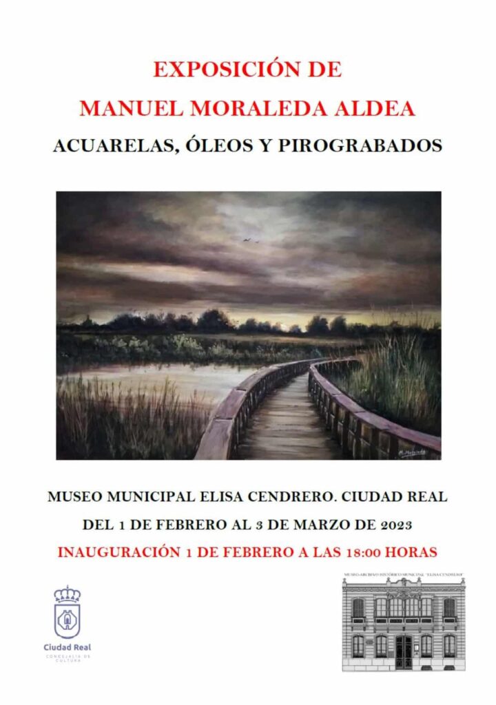 Una exposición del artista Manuel Moraleda Aldea con acuarelas, óleos y pirograbados será inaugurada el próximo 1 de febrero en Ciudad Real. Lo que será una atractiva muestra que todos deben aprovechar a visitar.