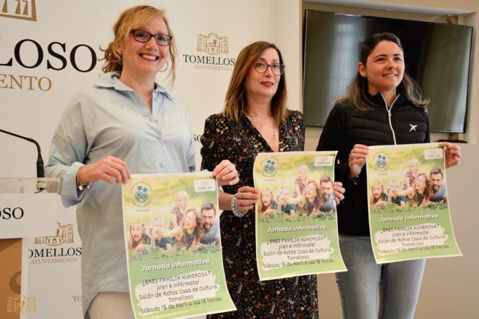 Una jornada informativa y de orientación sobre los derechos y beneficios de las familias numerosas, ha organizado la concejalía de Servicios Sociales del Ayuntamiento de Tomelloso (Ciudad Real) la Asociación Provincial de Familias Numerosas. La jornada fue presentada esta mañana por la concejala de Servicios Sociales, Montse Moreno y la presidenta de la Asociación, María Victoria Jiménez, tendrá lugar el próximo sábado, 15 de abril en el salón de actos de la Casa de Cultura, a las 18:00 h.