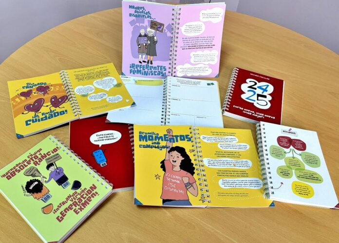 La concejalía de Igualdad ha distribuido cuatrocientas doce agendas escolares entre los alumnos de cuarto curso de ESO de Puertollano con el lema “Curso nuevo, vida nueva ¡Vida mejor! Este curso ¡Instalo mi nueva versión!”.