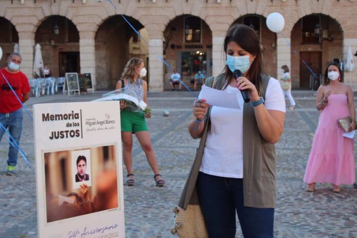 La líder regional ha anunciado que este año, como novedad, y en coordinación con Nuevas Generaciones de España, se presentarán mociones en los distintos ayuntamientos de Castilla-La Mancha solicitando que «se defienda la memoria, dignidad y justicia de todas las víctimas del terrorismo que, en la actualidad, siguen sufriendo el acoso y la coacción de los grupos radicales separatistas; concienciar y dar a conocer a las nuevas generaciones los episodios tan sanguinarios y de lesa humanidad que sufrieron los españoles durante décadas a manos de los terroristas; y denominar a una de las calles del término municipal de cada municipio, como homenaje a todas las víctimas del terrorismo, bajo el epígrafe ‘Miguel Ángel Blanco’ en recuerdo de aquel Espíritu de Ermua que supuso el principio del final de ETA».