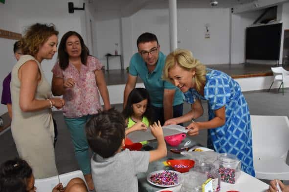 La delegada provincial de la Junta, Marian López, visitó Santa Cruz de Moya para conocer el proyecto de Escuela de Verano que ha puesto en funcionamiento el Ayuntamiento a través del Plan Corresponsables. En la visita estuvieron presentes el alcalde, Virgilio Antón, y la delegada de Igualdad, Ana Eloisa Olmeda.