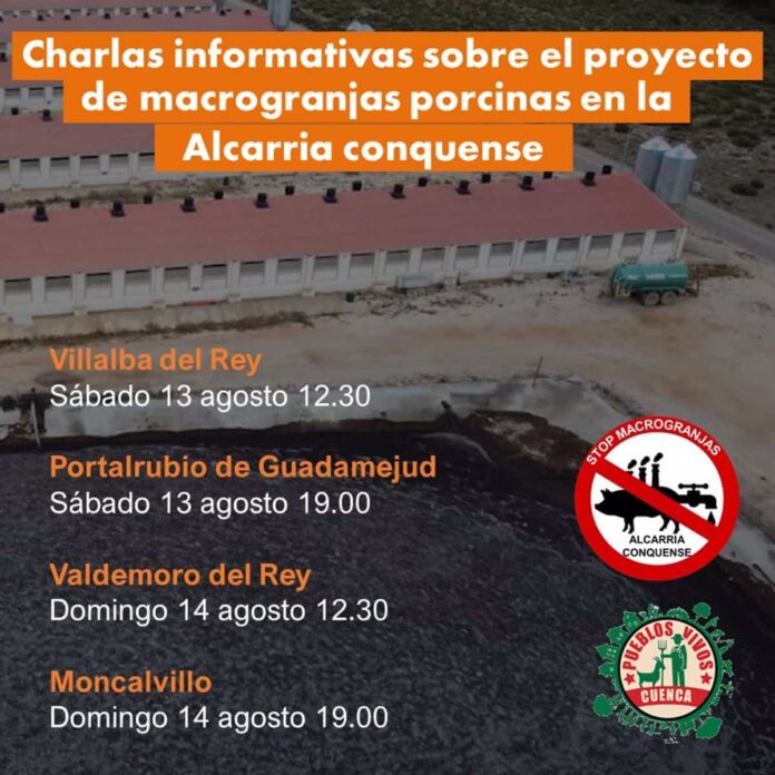 Este fin de semana los vecinos de varios municipios de la Alcarria conquense están convocados a una serie de charlas informativas organizadas por la plataforma Stop Macrogranjas Alcarria Conquense, integrada en Pueblos Vivos Cuenca.