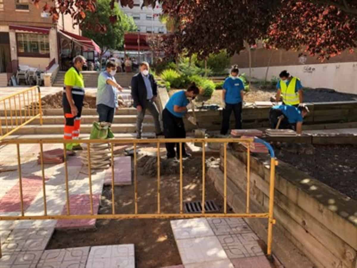Asimismo, en toda la zona de la plaza se están sustituyendo las baldosas deterioradas o que se encuentran en mal estado por otras nuevas.