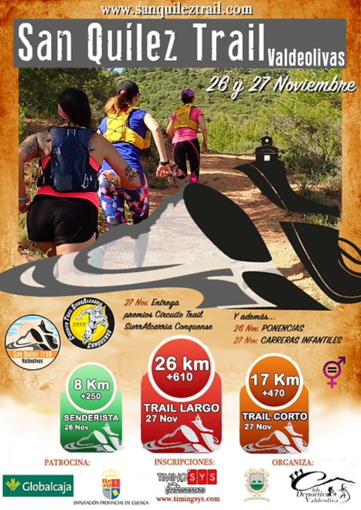 Este 26 y 27 de noviembre llega el San Quilez Trail Senderista una carrera de montaña en Valdeolivas (Cuenca). Con el apoyo de la Diputación de Cuenca y Globalcaja. Organiza el Club Deportivo Valdeolivas.