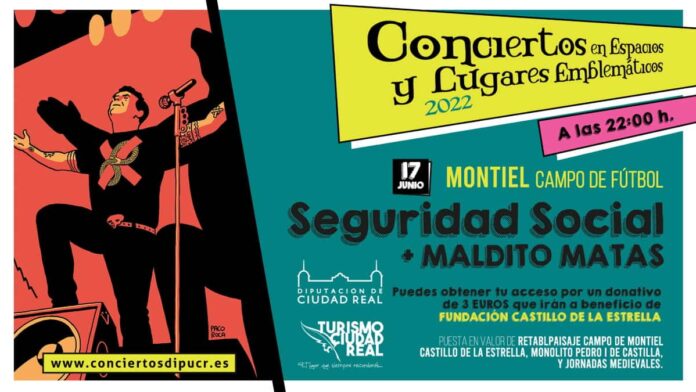 Seguridad Social + Malditos Matas actuarán este 17 de junio de 2022 en el Campo de Fútbol de Montiel. Otro de los conciertos en Espacios y Lugares Emblemáticos de la Diputación de Ciudad Real 2022.