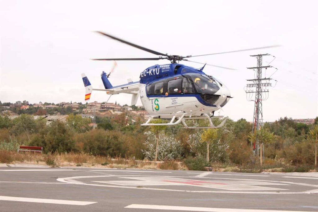 Tras ser atendido en el centro de salud de Sacedón, el herido fue trasladado en un helicóptero medicalizado al hospital madrileño.