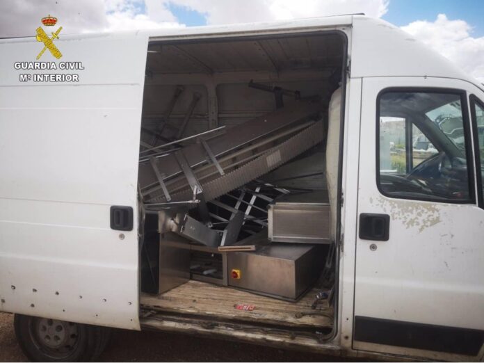 Este hecho activó el protocolo de vigilancia por parte de la Guardia Civil, que se mantuvo observando la escena. Acto seguido, cuando la furgoneta reanudó su marcha, los oficiales pudieron localizarla dentro de la propiedad de una empresa. Con la parcela rodeada, los efectivos sorprendieron en flagrante a los sospechosos mientras estos cargaban material sustraído en el vehículo, constatando además que habían forzado el acceso para ingresar illicitamente al sitio.