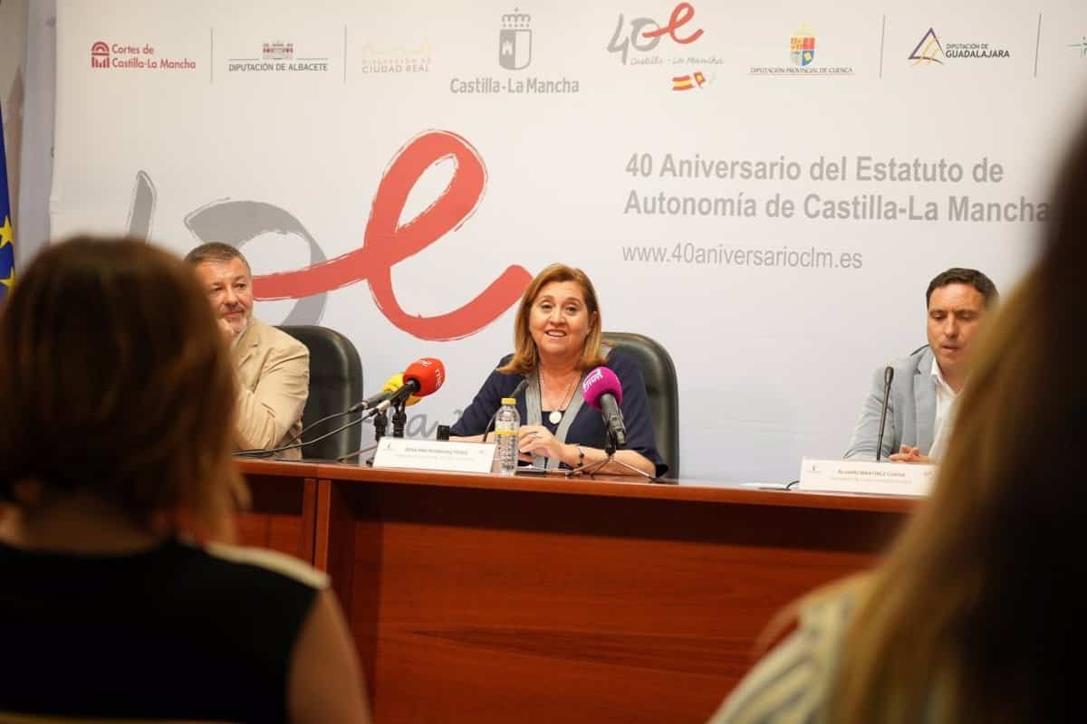 Rosa Ana Rodríguez ha destacado esta información en la presentación de las actividades que se van a celebrar en la provincia de Cuenca para conmemorar el 40 aniversario de la aprobación del Estatuto de Autonomía. En la rueda de prensa, la consejera ha estado acompañada de la delegada de la Junta en la provincia, Marián Martínez; del presidente de la Diputación de Cuenca, Álvaro Martínez; y del alcalde de Cuenca, Darío Dolz, entre otros.