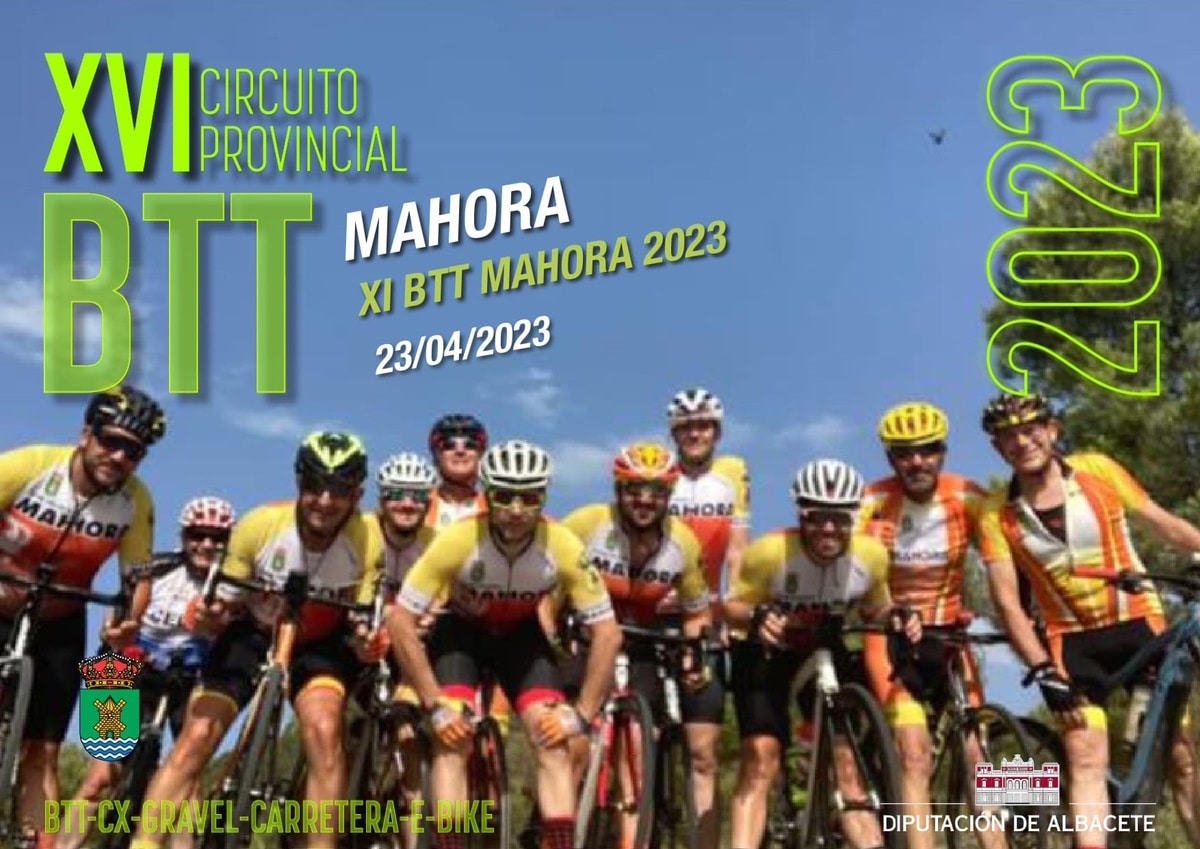 La X BTT Mahora 2023 será el 23 de abril, otra de las pruebas del XVI Circuito Provincial de BTT de Albacete. Con una distancia de 42,5 Km. La prueba dará inicio a las 10:00 h en la Plaza de la Mancha. Recogida de dorsales en la Puerta Ayuntamiento. 8:30h a 9:45h.