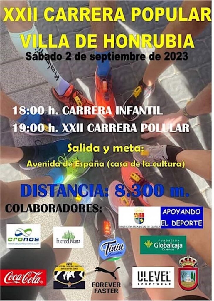Este 2 de septiembre se celebra la XXII Carrera Popular Villa de Honrubia 2023 que organiza y patrocina el Ayuntamiento de la localidad y la Diputación de Cuenca. Y que forma parte del XIX Circuito Provincial de Carreras Populares.